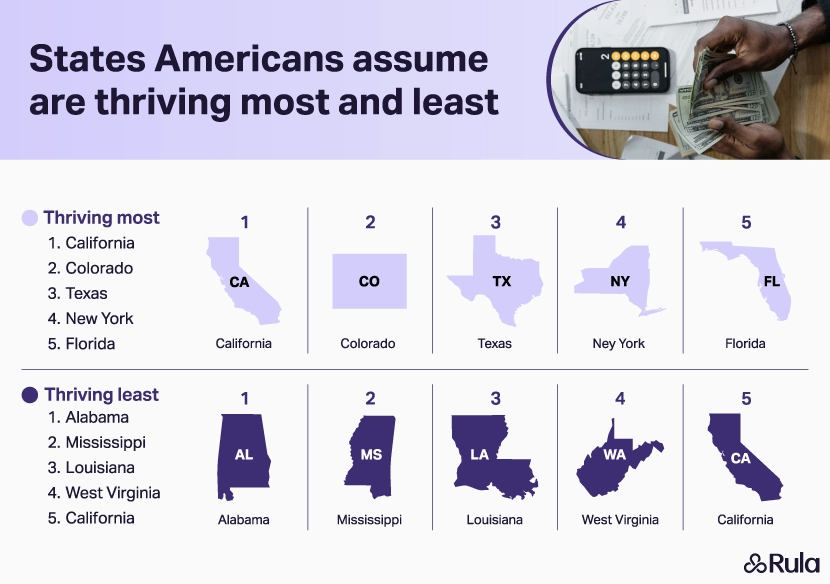 Americans assume California, Colorado, and Texas are thriving most.