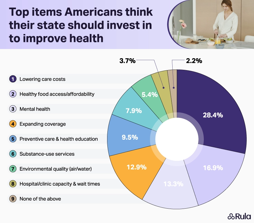 Lower care costs and healthy food access and affordability are the most common things people say their state should invest in.