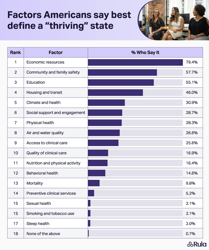 Economic resources and community and family safety are the two factors people say best define "thriving."